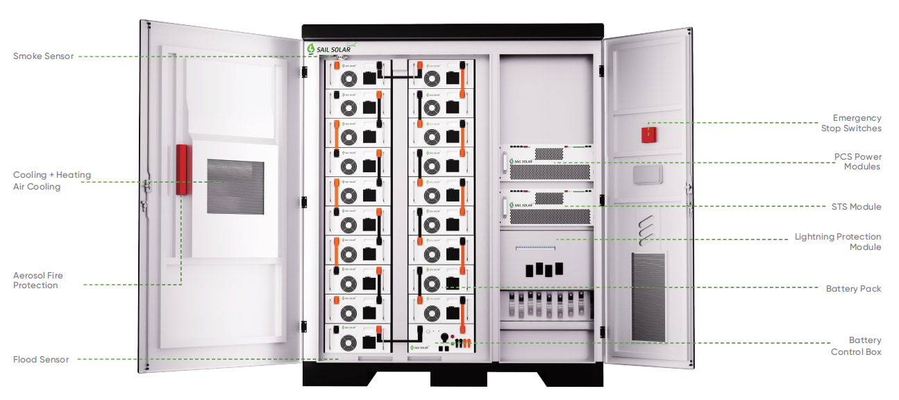 All-in-oneCon una potencia de salida de 105 kW y una capacidad de almacenamiento de 215 kWh, además de un robusto inversor de 125 kW y opciones de almacenamiento escalables de 233 kWh o 261 kWh, nuestro innovador armario de almacenamiento de energía para exteriores representa un cambio radical en la gestión de energía para el sector comercial e industrial.