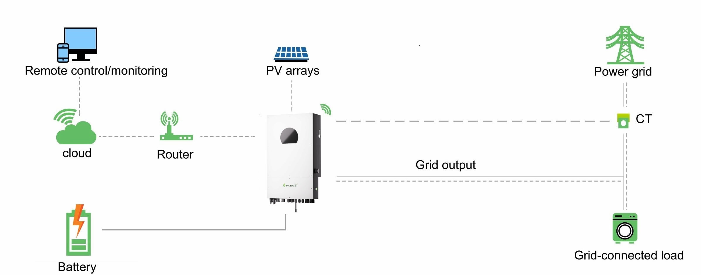 Además, el inversor admite diversos modos de funcionamiento y configuraciones de sistema, por lo que, tanto si busca optimizar el sistema solar conectado a la red de su hogar como si desea actualizar el sistema de respaldo aislado de su propiedad, este inversor puede gestionar una amplia gama de aplicaciones de energía doméstica. Podrá cubrir sus necesidades energéticas y proteger su hogar contra la inestabilidad de la red y los apagones programados, a la vez que disfruta de un gran ahorro mensual en su factura de electricidad.