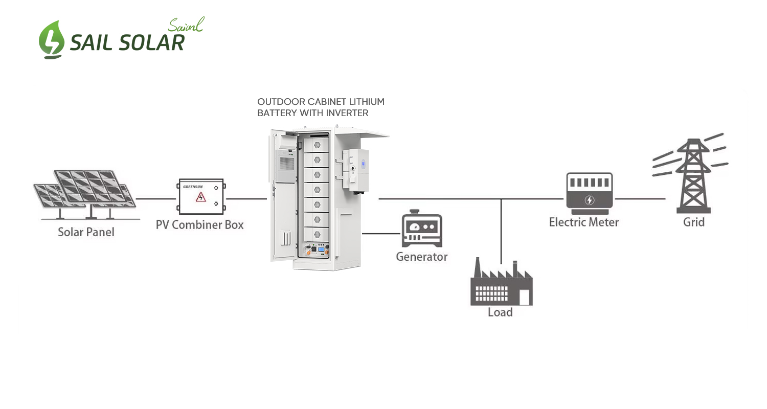 Kit completo Sail Solar 30KW 50KW Inversor solar híbrido con batería de litio de 100KWH Sistema de almacenamiento de energía todo en uno para exteriores