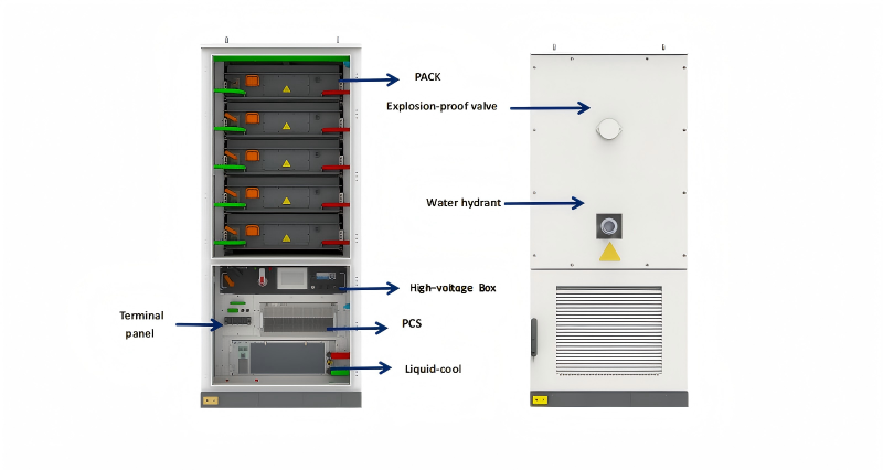 All-in-oneThe energy storage system is configured as 125kW/261kWh, and it adopts a distributed integrated design scheme. It is used in a variety of application scenarios such as emergency power supply, peak-cutting and valley-filling. Battery capacity is 261kWh, it is connected to the high-voltage switch box through a cable, and the three-phase four-wire energy storage converter (PCS) in the box is connected to the rear. The system is equipped with a 125kW PCS integrated machine and connected to 400Vac AC bus.