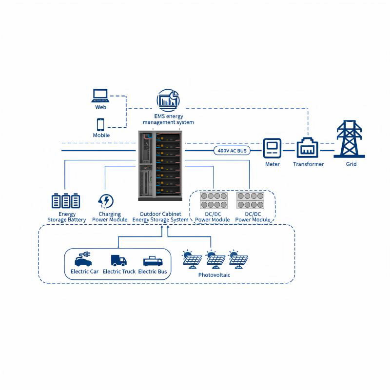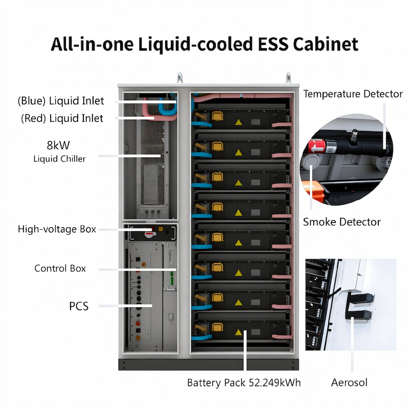 All-in-one ESSNuestro sistema de almacenamiento de energía con baterías refrigeradas por líquido para exteriores de 418 kWh está equipado con celdas de fosfato de hierro y litio de 314 Ah, que ofrecen una amplia compatibilidad de voltaje, una eficiencia operativa superior, un rendimiento estable y una vida útil prolongada. Es ideal para aplicaciones de gran capacidad, como fábricas, edificios comerciales y estaciones integradas de carga y almacenamiento solar.
