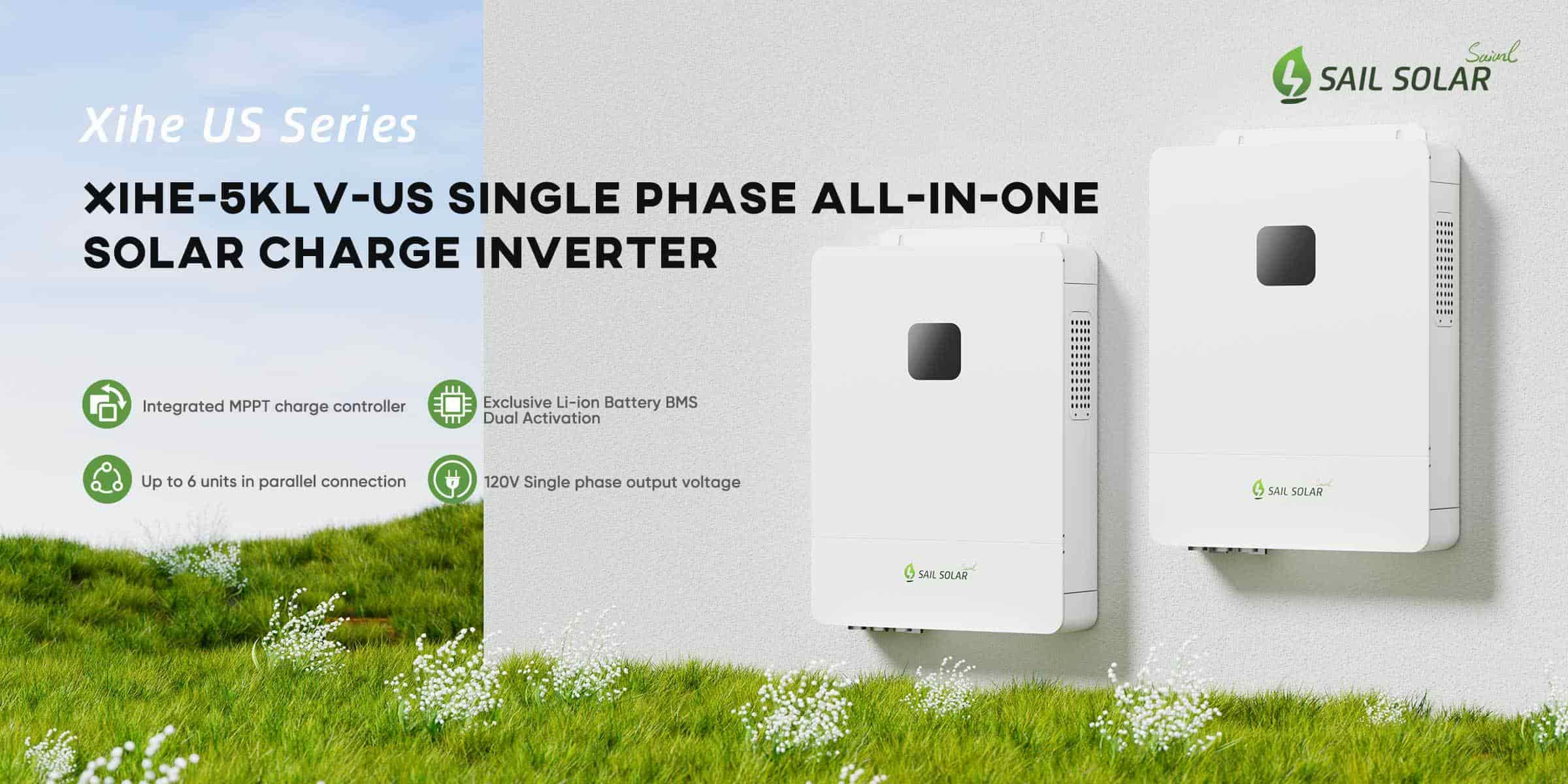 El inversor de carga solar monofásico Xihe-5KLV-US de 120 V admite el funcionamiento en paralelo de hasta 6 dispositivos, permite el control inteligente de la carga y se conecta y cambia automáticamente a fuentes de alimentación de CA independientes.