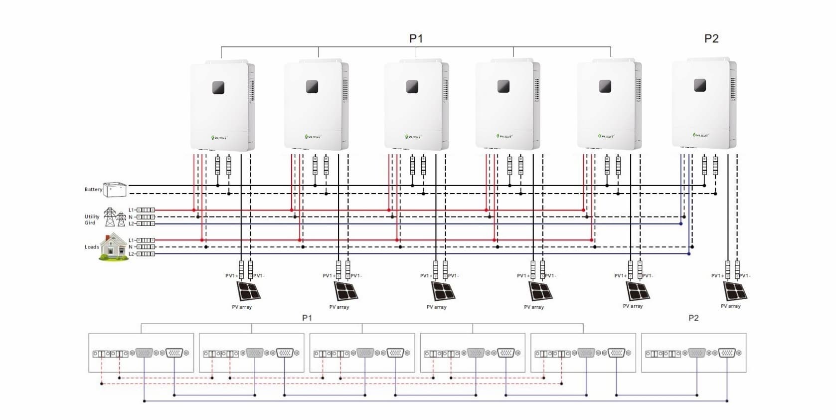 Los inversores solares admiten hasta 6 unidades en conexión en paralelo; los inversores de almacenamiento de energía solar se pueden conectar en paralelo para formar dos fases.