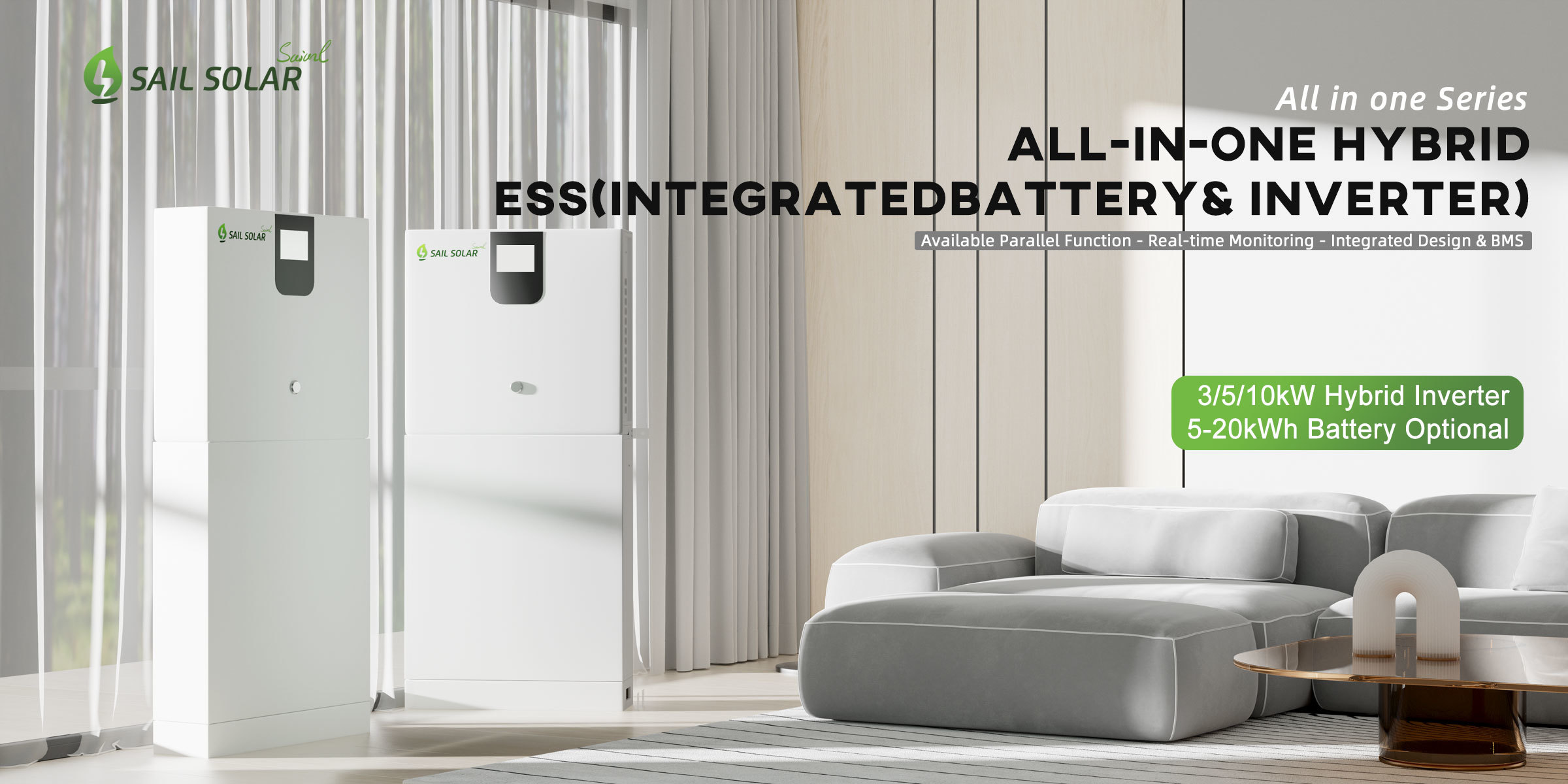 All-in-one El sistema de almacenamiento de energía solar SAIL SOLAR All in One para uso doméstico es un inversor/cargador solar multifuncional que combina las funciones de inversor, cargador solar MPPT y cargador de baterías para ofrecer alimentación ininterrumpida. Es la fuente de alimentación de respaldo perfecta para sistemas aislados de la red eléctrica, como electrodomésticos, herramientas eléctricas, equipos industriales y equipos electrónicos de audio y video.
