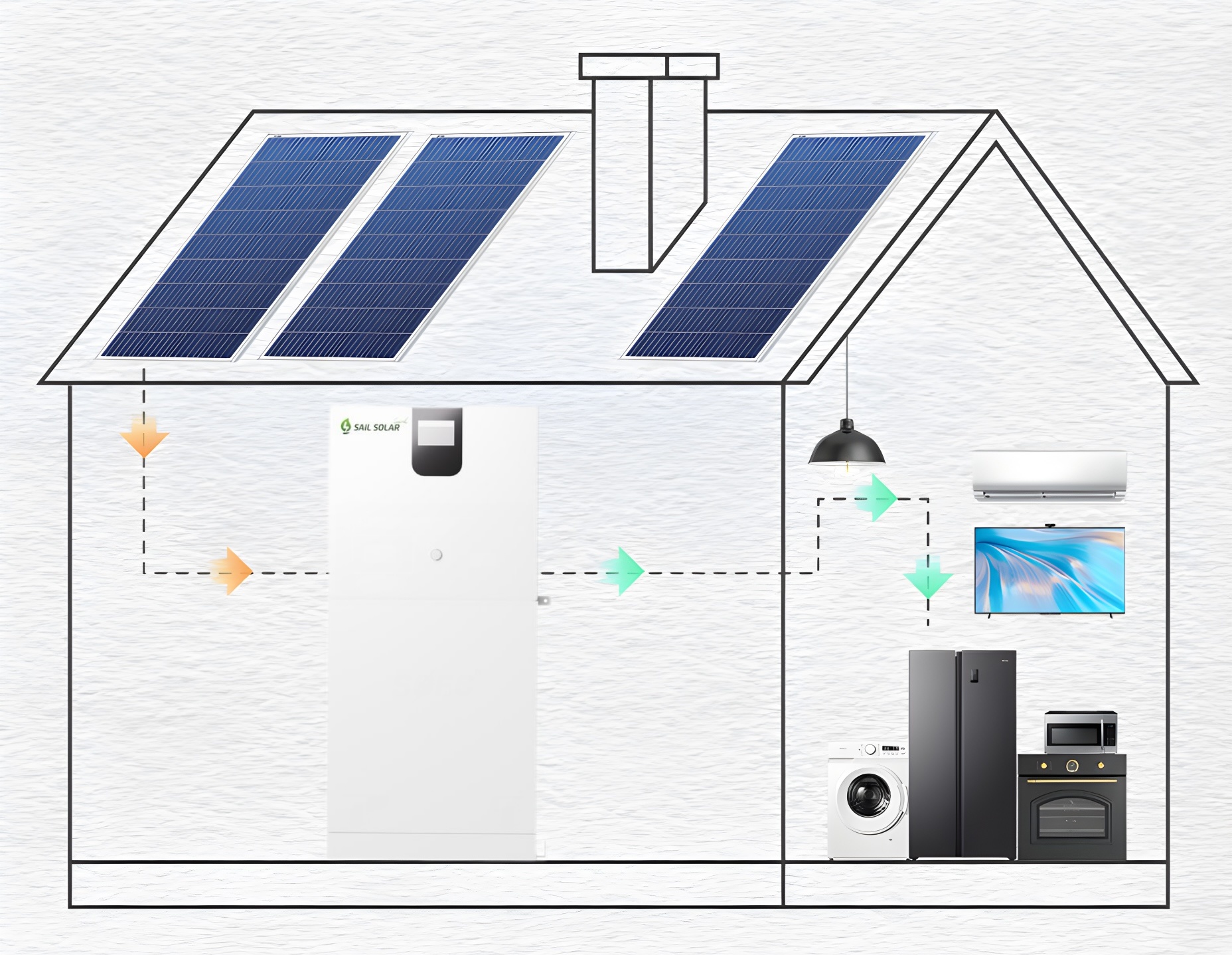 El sistema de almacenamiento de energía solar SAIL SOLAR All in One para uso doméstico es un inversor/cargador solar multifuncional que combina las funciones de inversor, cargador solar MPPT y cargador de baterías para ofrecer alimentación ininterrumpida. Es la fuente de alimentación de respaldo perfecta para sistemas aislados de la red eléctrica, como electrodomésticos, herramientas eléctricas, equipos industriales y equipos electrónicos de audio y video.