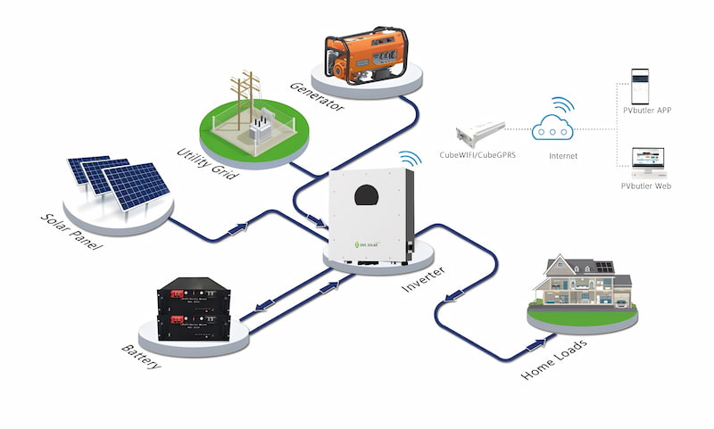 Hybrid AC/DC InverterComo componente central del sistema energético, este inversor de 30 kW admite tanto el uso conectado a la red como el uso fuera de la red, múltiples tipos de baterías y cuenta con una protección de hardware integral.