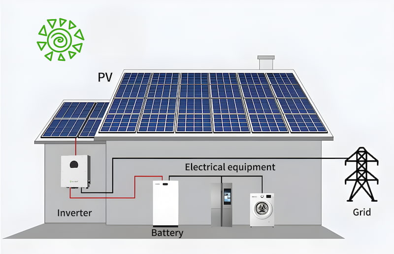 El corazón del sistema es el inversor solar híbrido Helios Series de 25 kW y 480 V, un dispositivo de vanguardia equipado con una pantalla LCD a color de alta definición para una fácil monitorización y funcionamiento. Diseñado para satisfacer las necesidades actuales de gestión energética, incorpora múltiples funciones de comunicación, lo que permite a los usuarios monitorizar y controlar el sistema sin esfuerzo mediante una aplicación móvil específica. Tanto en casa como fuera, el control remoto garantiza la máxima comodidad y flexibilidad.