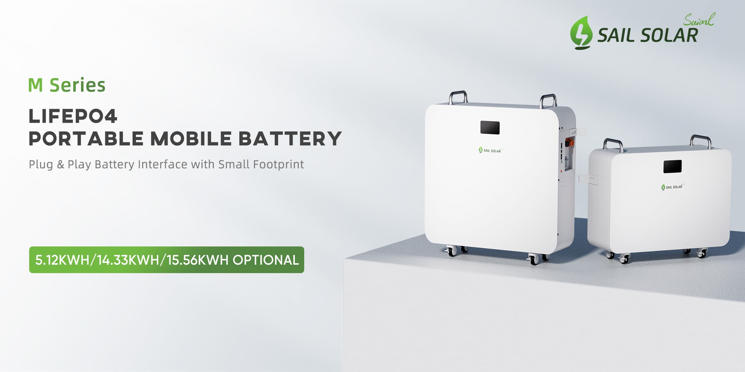 Batería móvil de litio de gran capacidad Sail Solar Serie M (14,33 kWh) con BMS integrado y almacenamiento de energía de 280 Ah.